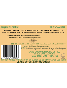 COSMOS ORGANIC certifié par ECOCERT Greenlife selon le référentiel COSMOS