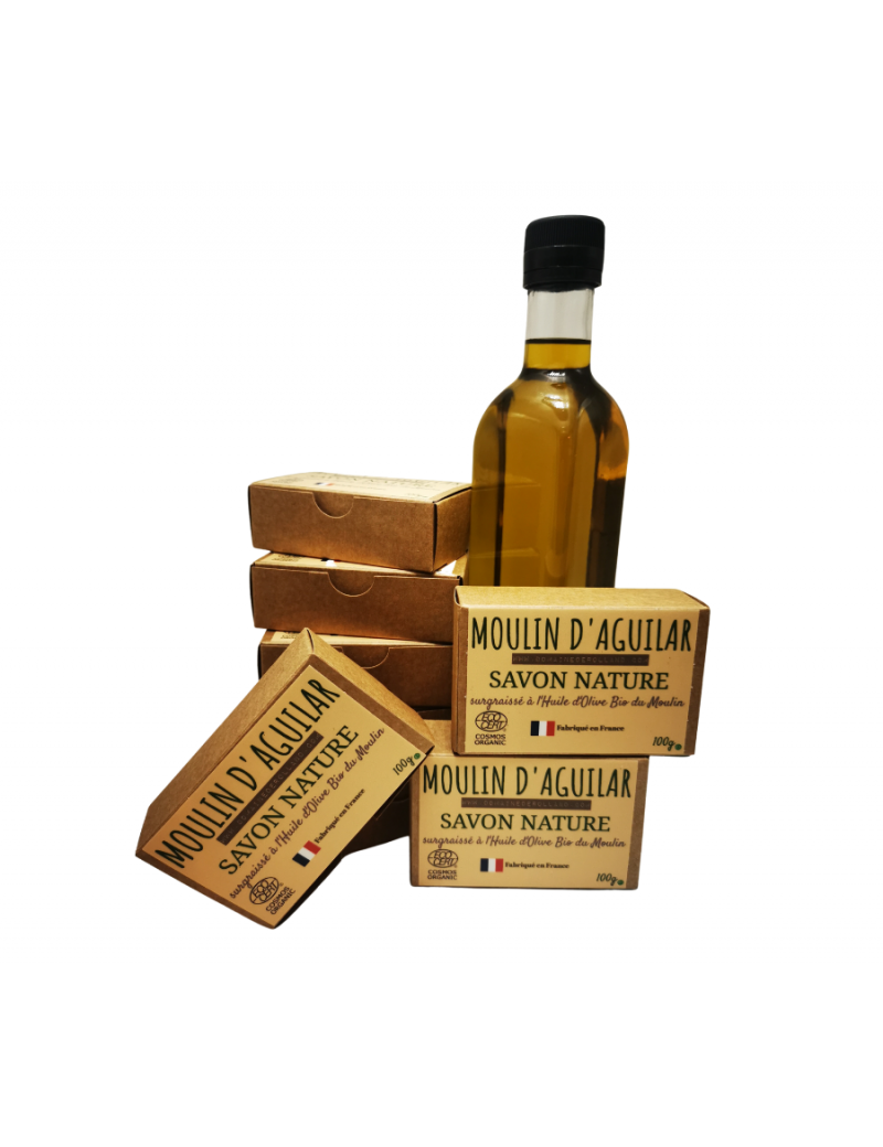 Savon nature, surgraissé avec l'huile d'olive Bio du Moulin d'Aguilar