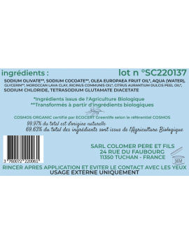 COSMOS ORGANIC certifié par ECOCERT Greenlife selon le référentiel COSMOS.