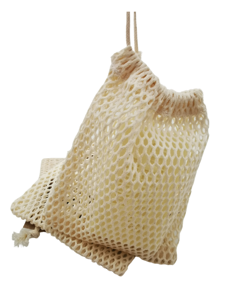 Fabriqué en Bretagne, filet à savon 100% coton Bio, EXFOLIANT